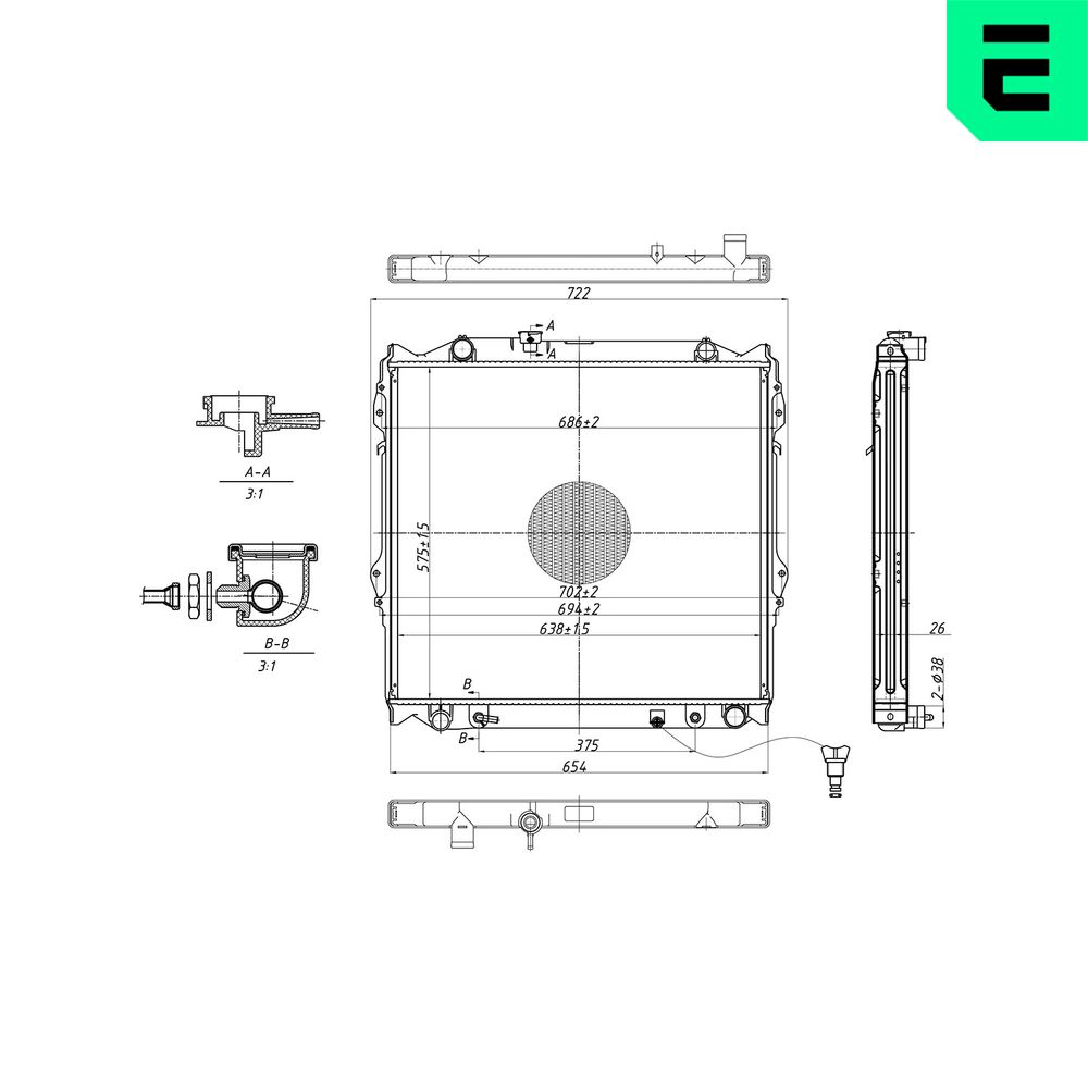 Informations sur les articles Largeur de filet [mm] 638 Longueur de filet [mm] 575 Profondeur de filet [mm] 26 Version de radiateur Grille de radiateur soudée | |