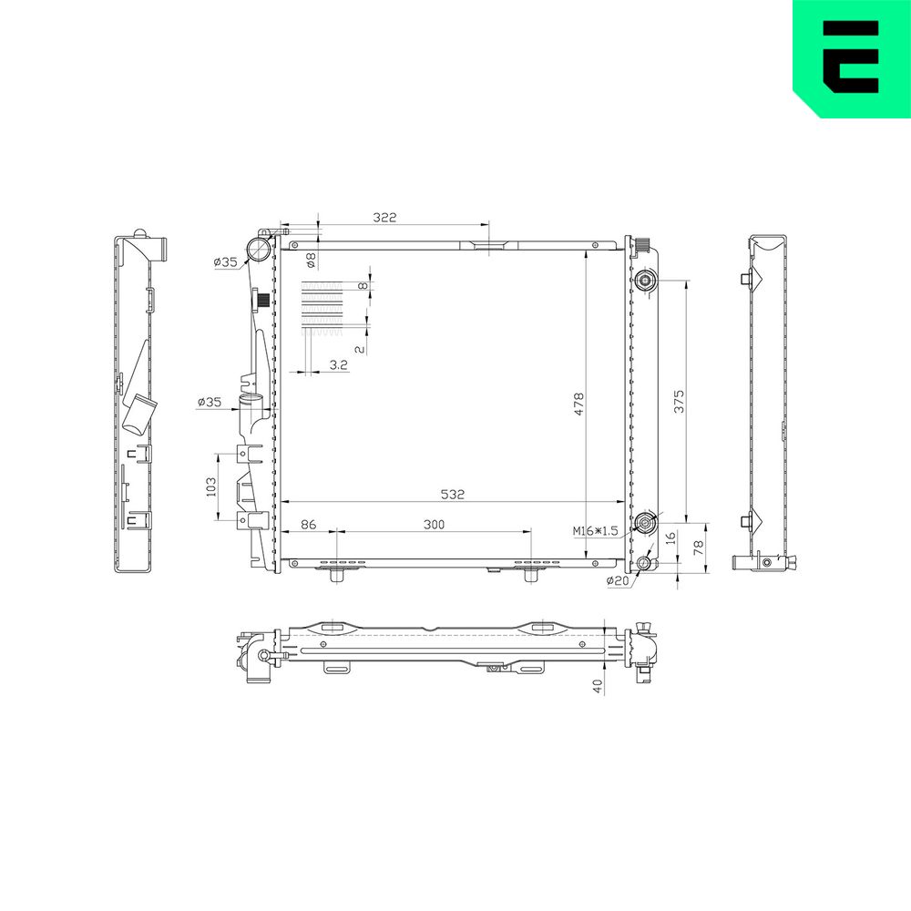 Informations sur les articles Largeur de filet [mm] 478 Longueur de filet [mm] 532 Profondeur de filet [mm] 40 Version de radiateur Grille de radiateur soudée | |
