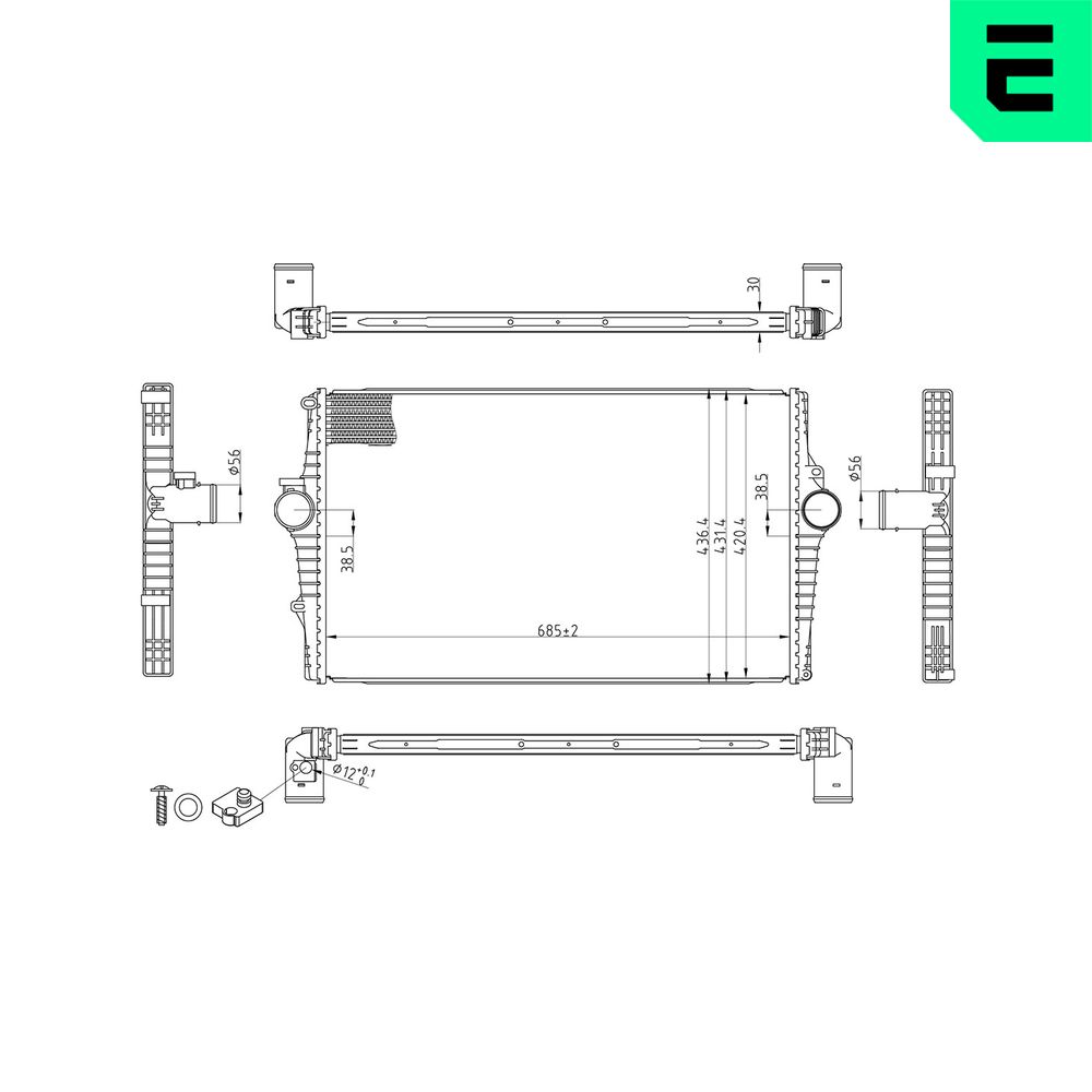 Informations sur les articles Largeur de filet [mm] 288 Longueur de filet [mm] 304 Matériau pour grille de radiateur Aluminium Matériau pour réservoir d'eau (radiateur) Aluminium Profondeur de filet [mm] 62 Type de refroidissment refroidi par air Version de radiateur Grille de radiateur soudée | |